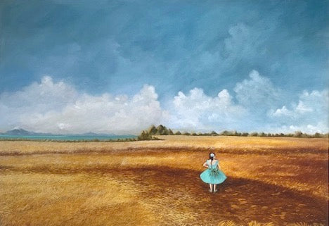 Su narrativa es nostálgica, inspirada en antiguas fotografías, de su familia o encontradas en algún persa y sus paisajes pertenecen a su imaginario. Son paisajes irreales, aquellos  que sólo aparecen en sus sueños.